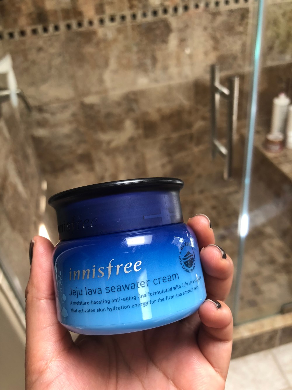 The item that caught my eye was the Jeju Lava Seawater cream that advertised its moisturizing and anti aging qualities.