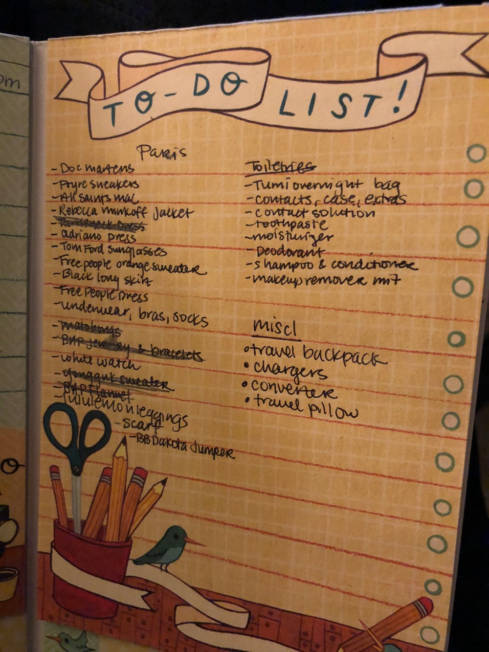 To prepare for the journey I have compiled a list of necessities that I will be checking off as the time to leave draws near.
