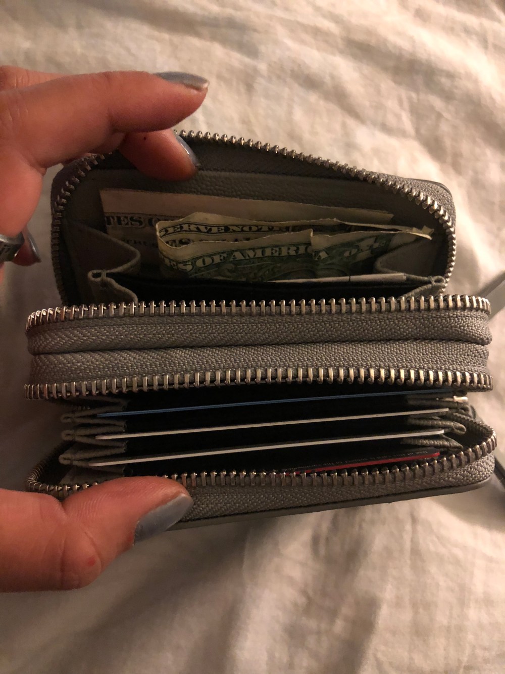 I needed a new wallet and decided to go with the Allsaints Kathi Leather Card Holder in blue grey.