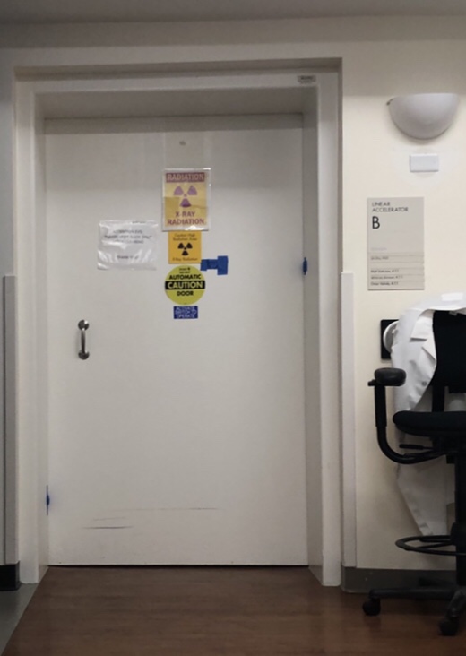 Each day my radiation treatment is on linear accelerator B, which looks like this: