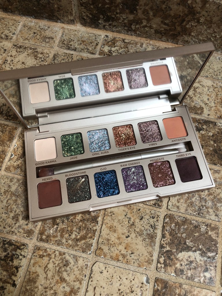 The Urban Decay Stoned Vibes Eyeshadow Palette is the perfect palette for this holiday season. There are 4 matte shades and 8 shimmery, pearlescent shades for a total 12 shades. I purchased the palette through Amazon.