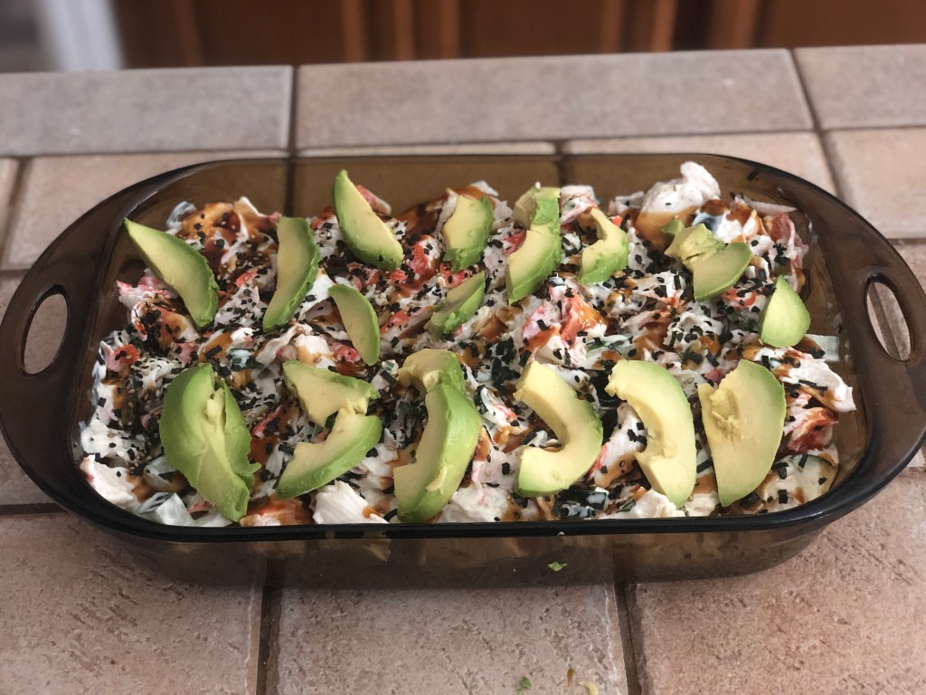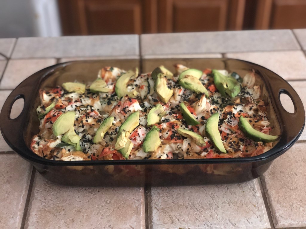 Sushi bake is an easy and delicious recipe.