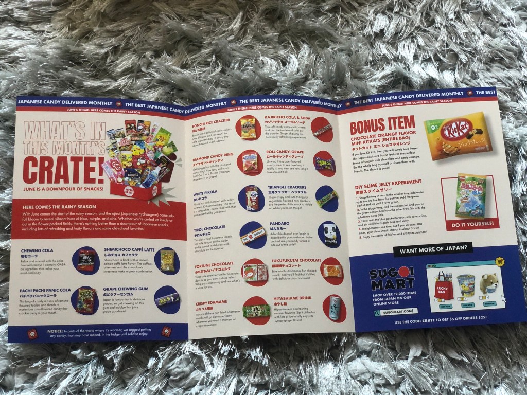 June’s theme is here comes the rainy season and Japancrate has provided a downpour of snacks to enjoy.