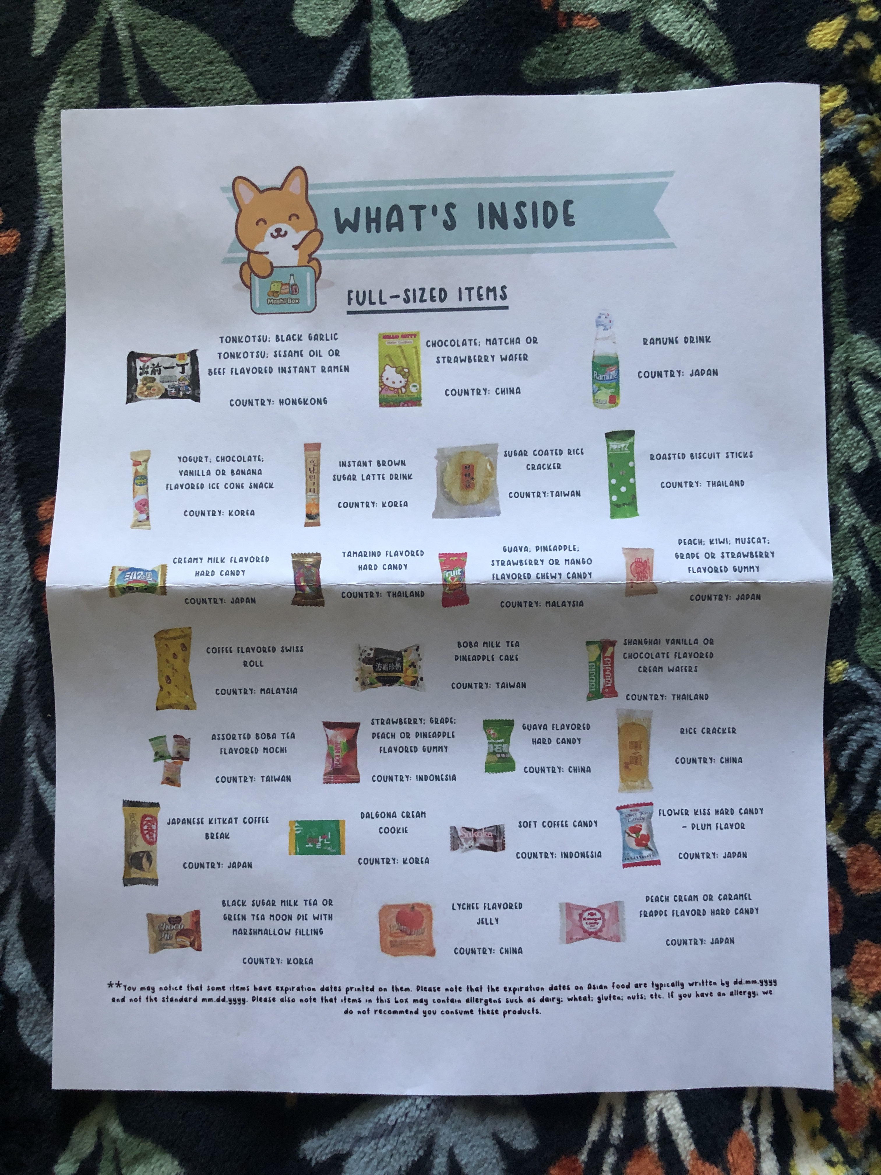 I ordered a snack box from Mashi Box through Amazon. Included are several full size items and a list which contains a description of the snack and its country of origin.