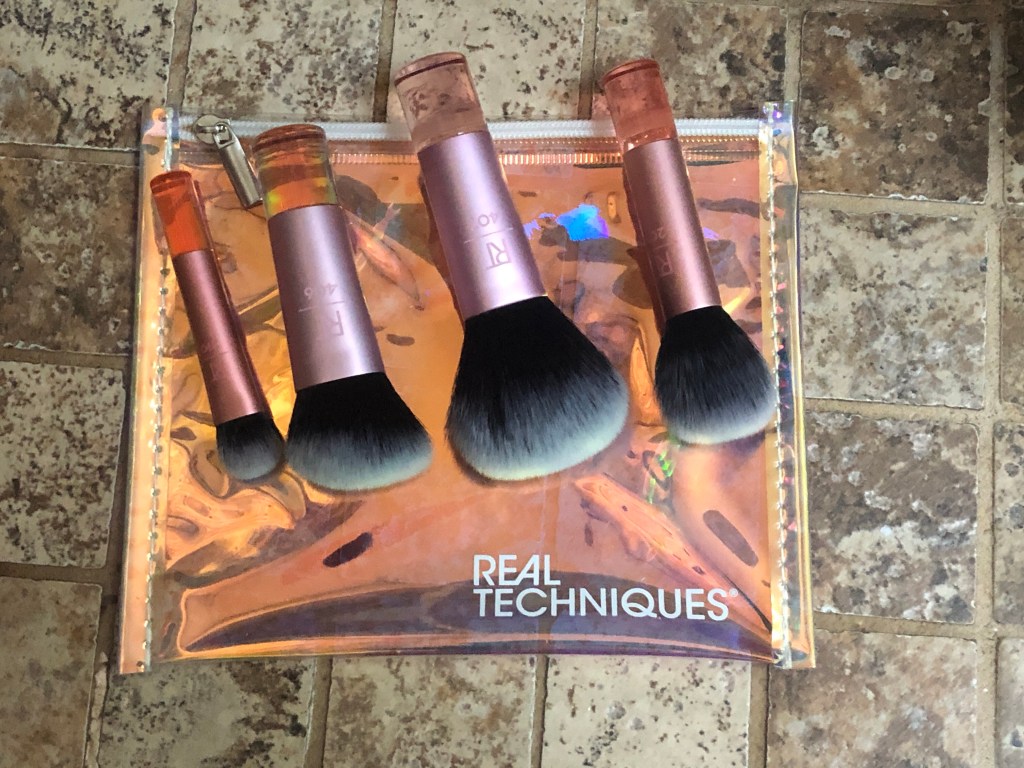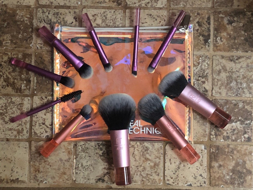 This brush set from Real Techniques includes 10 mini brushes and a travel bag. I purchased the brushes through Amazon.